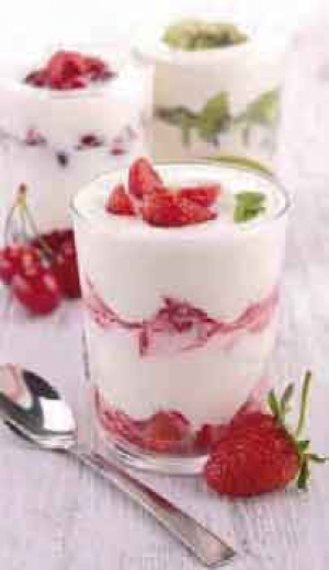 Chaource fouetté et grapillons de groseilles